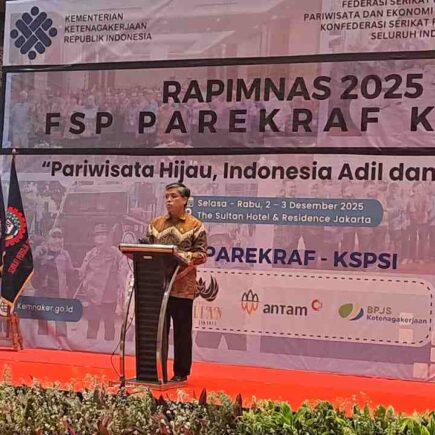 Jakarta – Rapat Pimpinan Nasional (Rapimas) Parekraf KSPSI 2025 resmi dibuka di hotel Hilton Jakarta, Selasa (2/12/2025). Rapimnas dihadiri Ketua Umum Konfederasi Serikat Pekerja Seluruh Indonesia (KSPSI) Moh Jumhur Hidayat dan pembukaan oleh Menaker Yassierli.