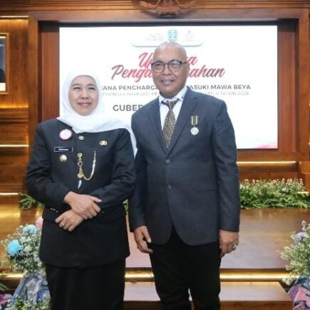 Ketua Umum PWI Pusat Akhmad Munir Terima Lencana Kehormatan “Jer Basuki Mawa Beya” dari Gubernur Jatim