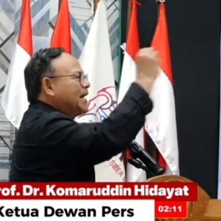 JAKARTA – Ketua Dewan Pers, Prof. Komaruddin Hidayat menegaskan bahwa tantangan utama pers di era disrupsi adalah menjaga kualitas diskursus publik agar tetap sehat, bermakna, dan berpihak pada kepentingan masyarakat.