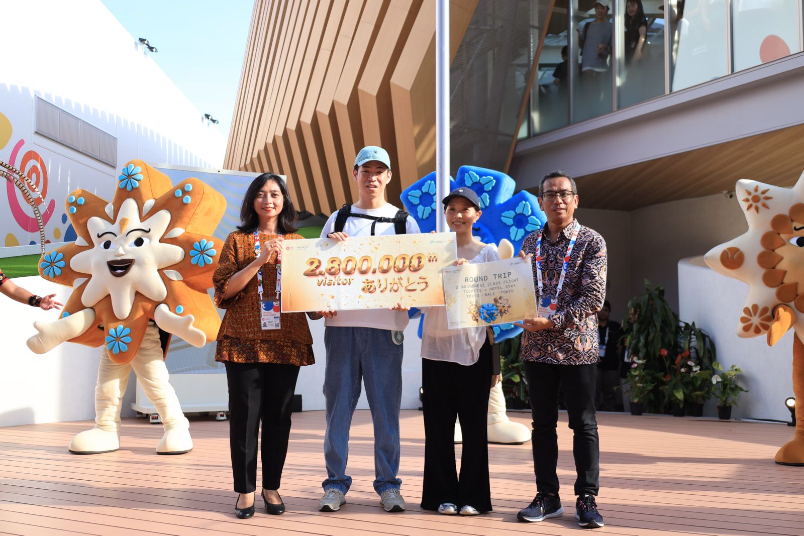 Osaka, Kansai, Jepang, 17 September 2025 – Satu bulan menjelang berakhirnya pagelaran World Expo 2025 Osaka, Paviliun Indonesia telah menembus target total kunjungan hingga 2,8 juta pengunjung sejak resmi dibuka pada 13 April 2025. Pengunjung ke-2.800.000 ini adalah pasangan calon pengantin asal Jepang yang mendapat hadiah tiket pesawat Osaka-Bali (PP) dan penginapan selama 3 hari 2 malam.
